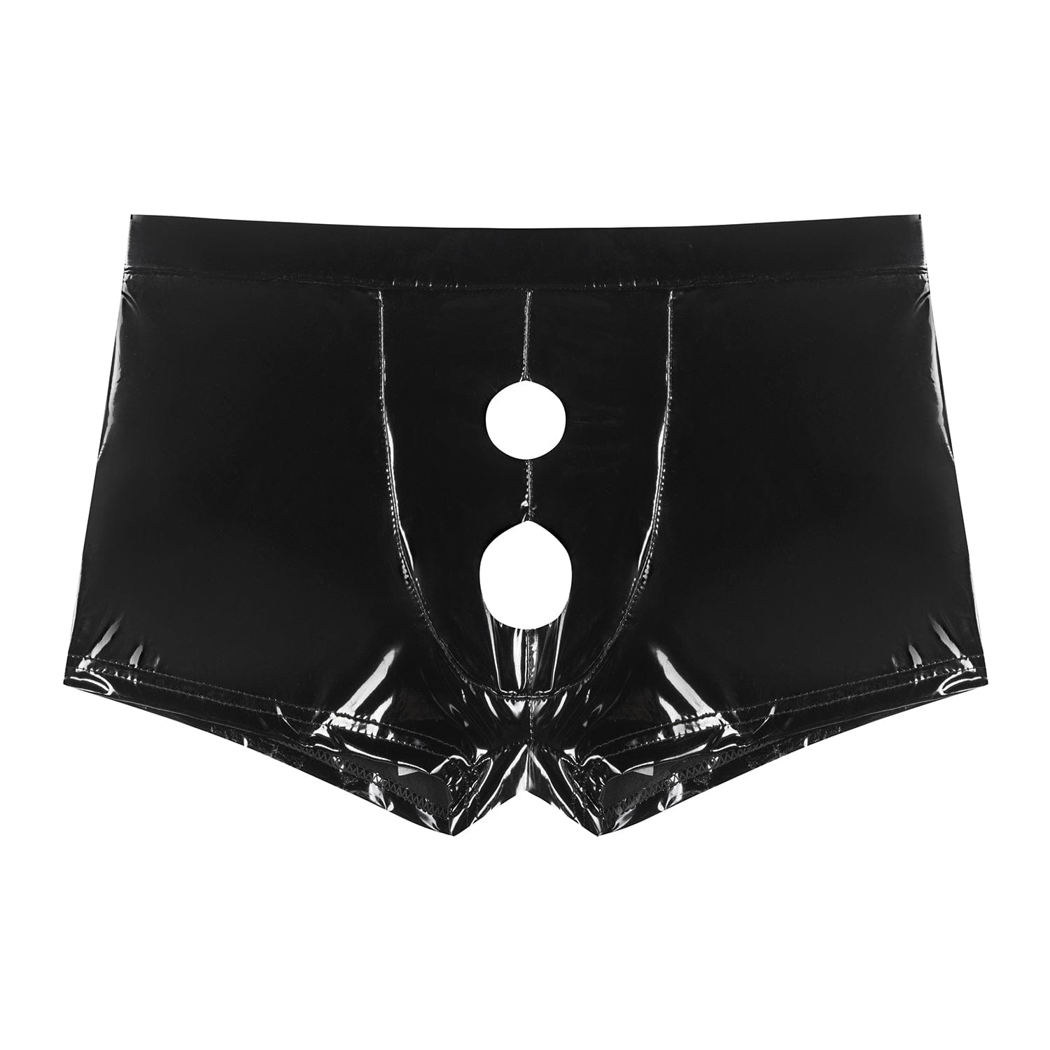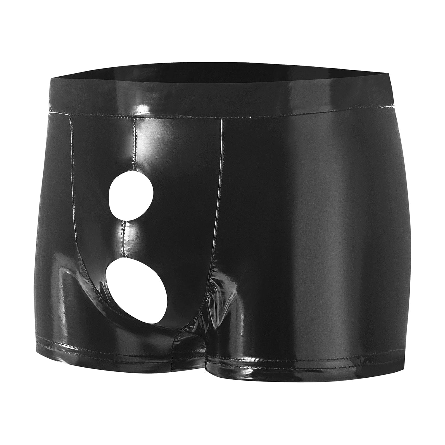Mens Sexy Open Crotch Leather Boxer Hot Erotic Penis Underwear Xokesy-225