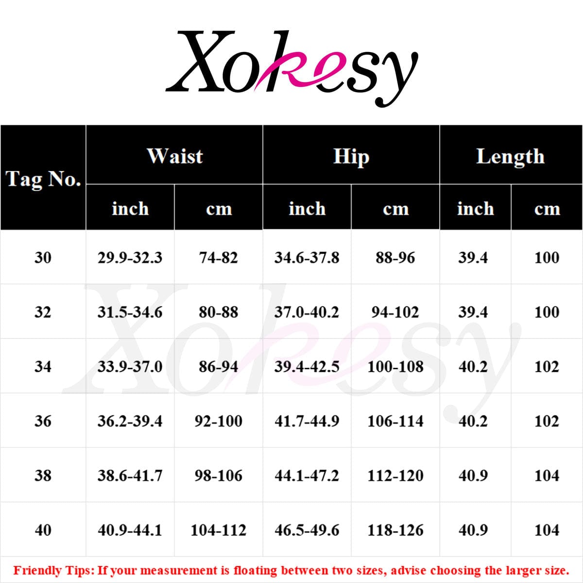 Size chart: 30,32,34.36,38,40