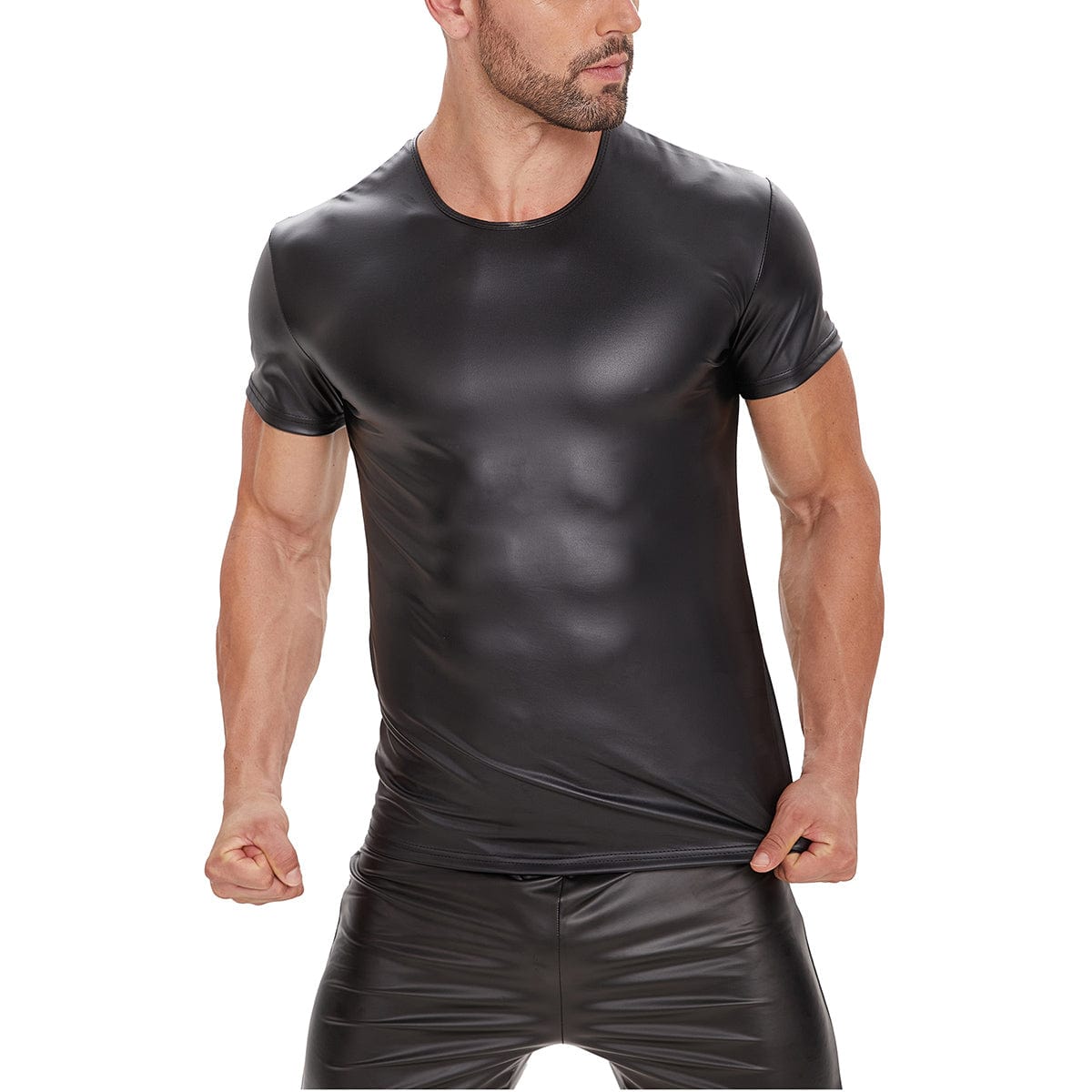 1. Mens shiny leather ultra-thin T-shirt, very erotic to wear.