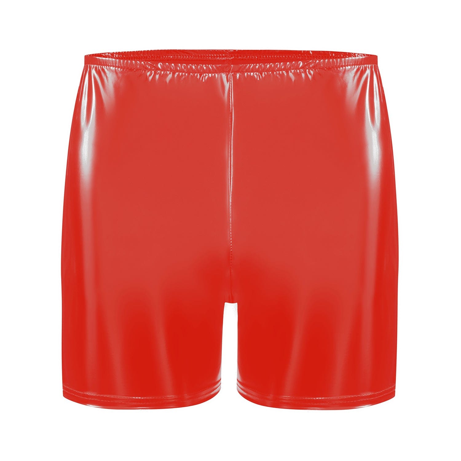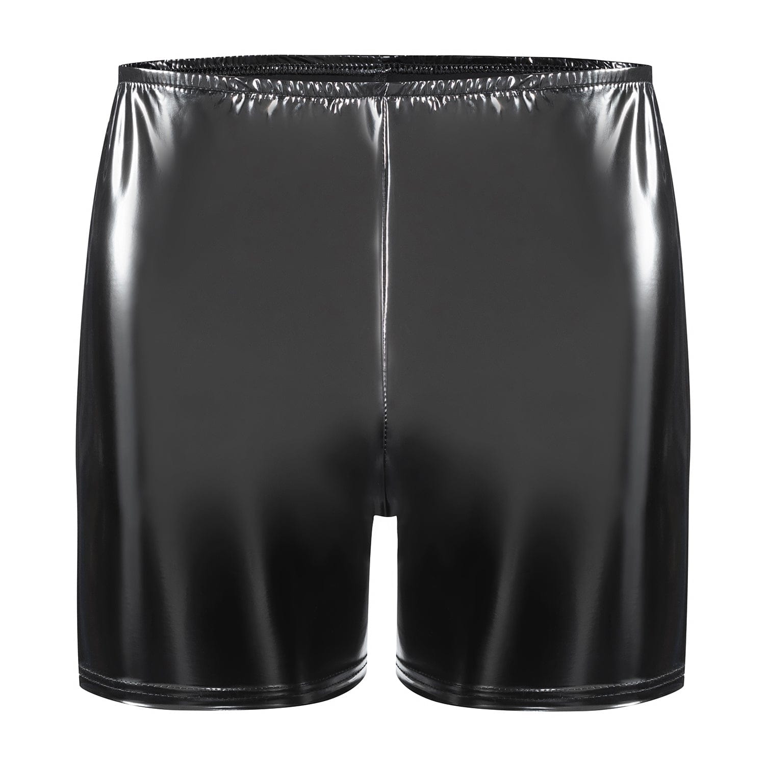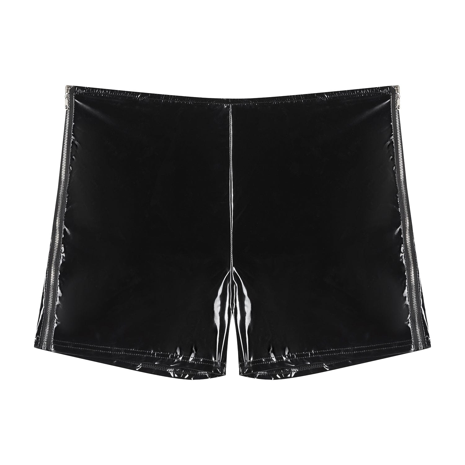 Mens Shiny Leather Boxer Zipper Beside Bulge Pouch Short Pants Xokesy-217