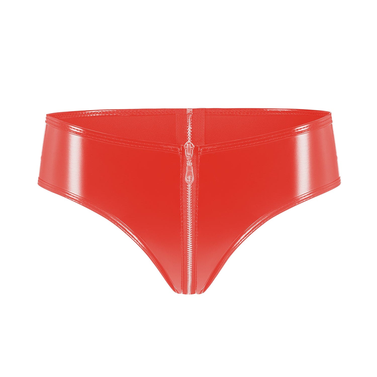 Women Sexy Open Crotch Leather Brief For Sex Low Waist Shorts Xokesy-131