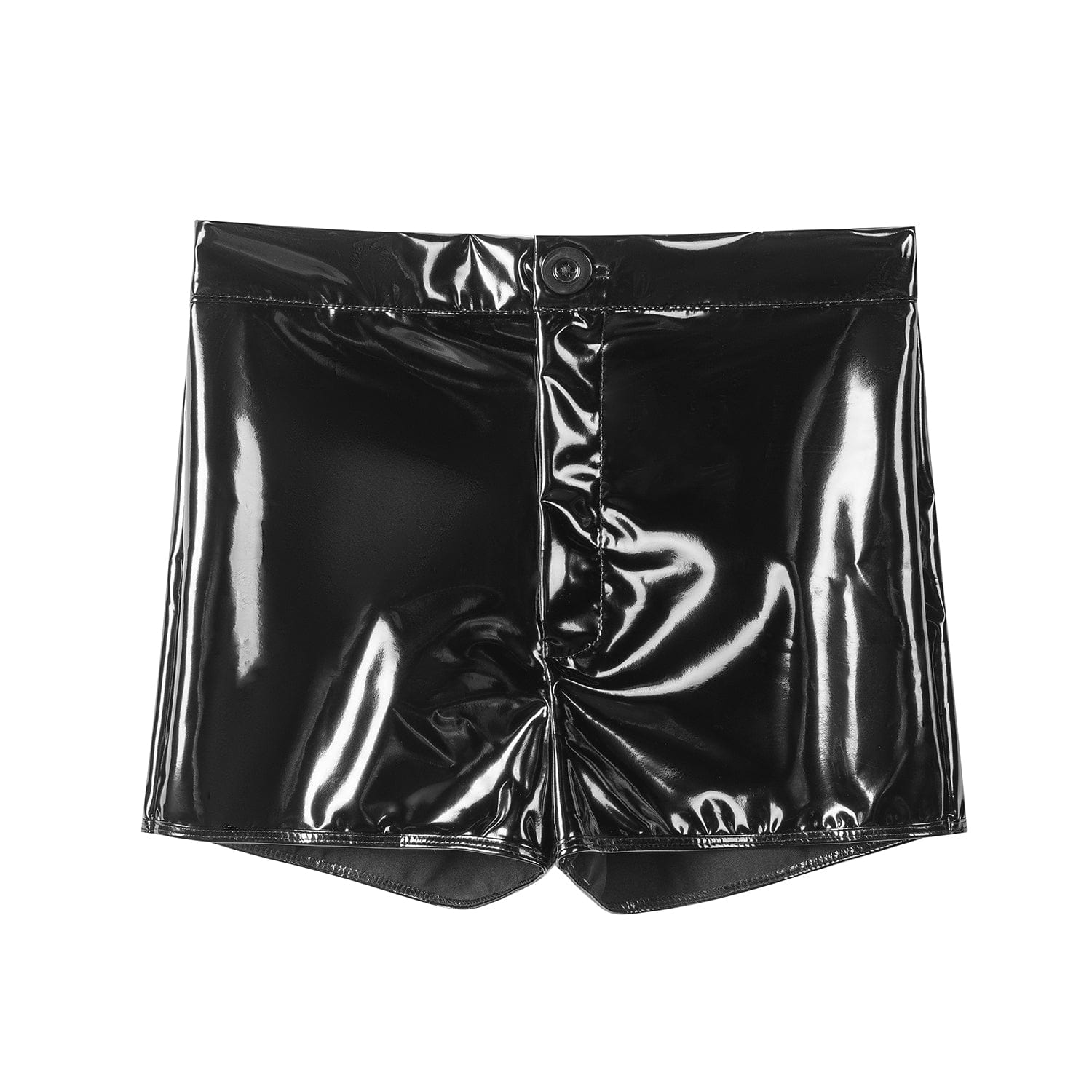 1. Women's sexy glossy leather boxer, skinny bag hip rave shorts, very erotic to wear.