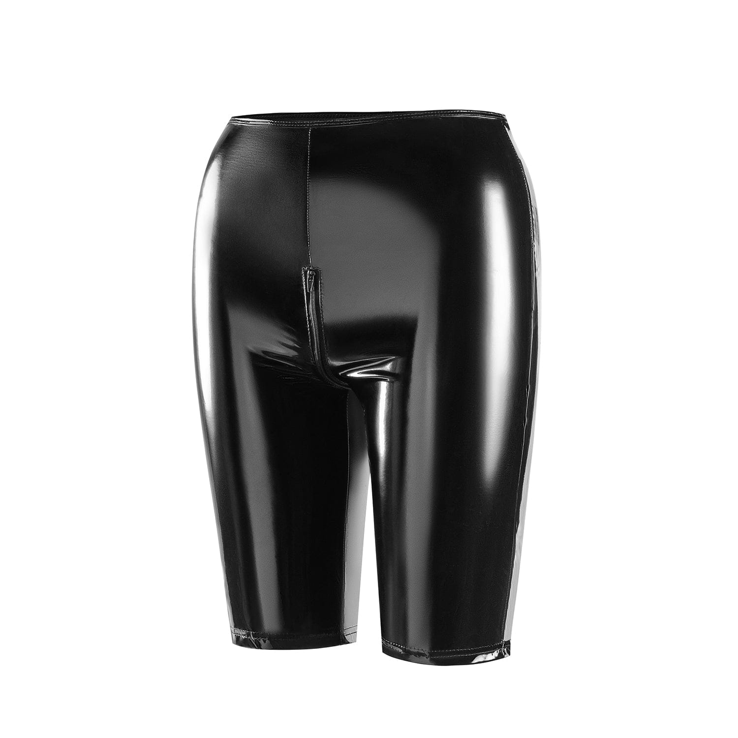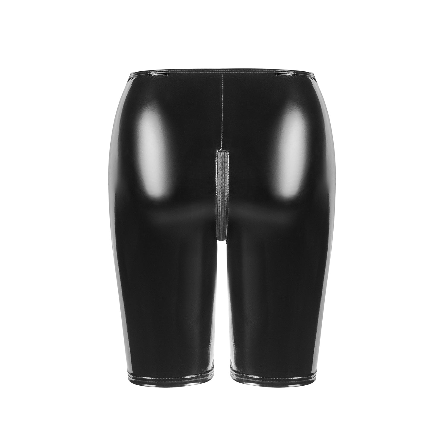Women Wetlook PU Leather Short Pants Crotchless For Sex Boxer Xokesy-142