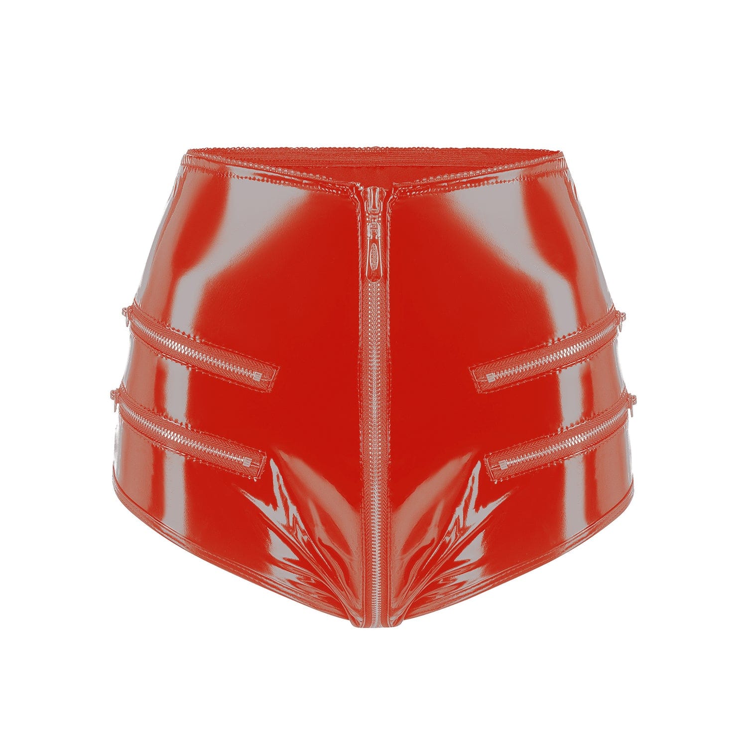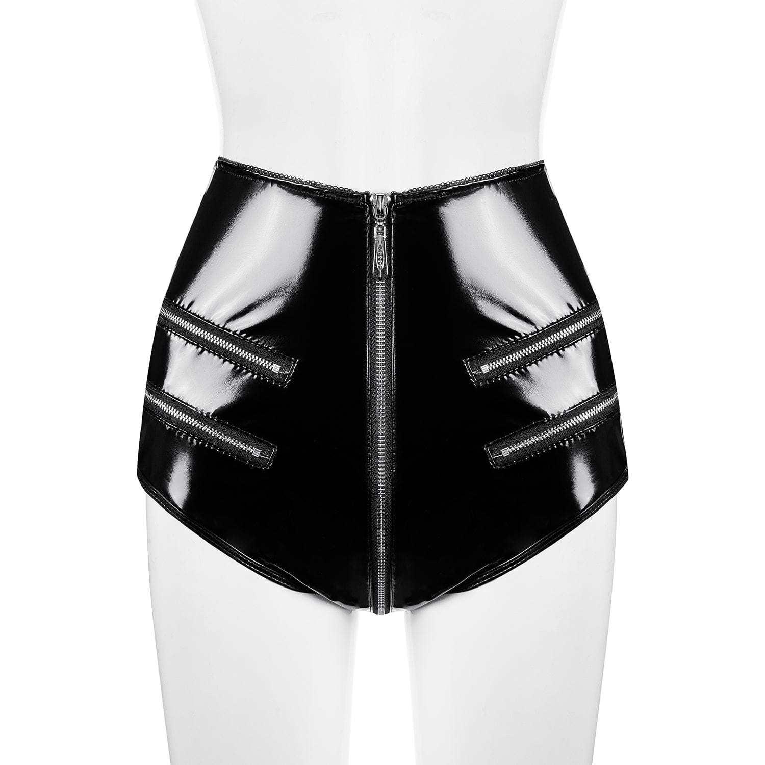 Women Sexy Zipper Open Crotch Leather Boxer For Sex Short Pants Xokesy-139