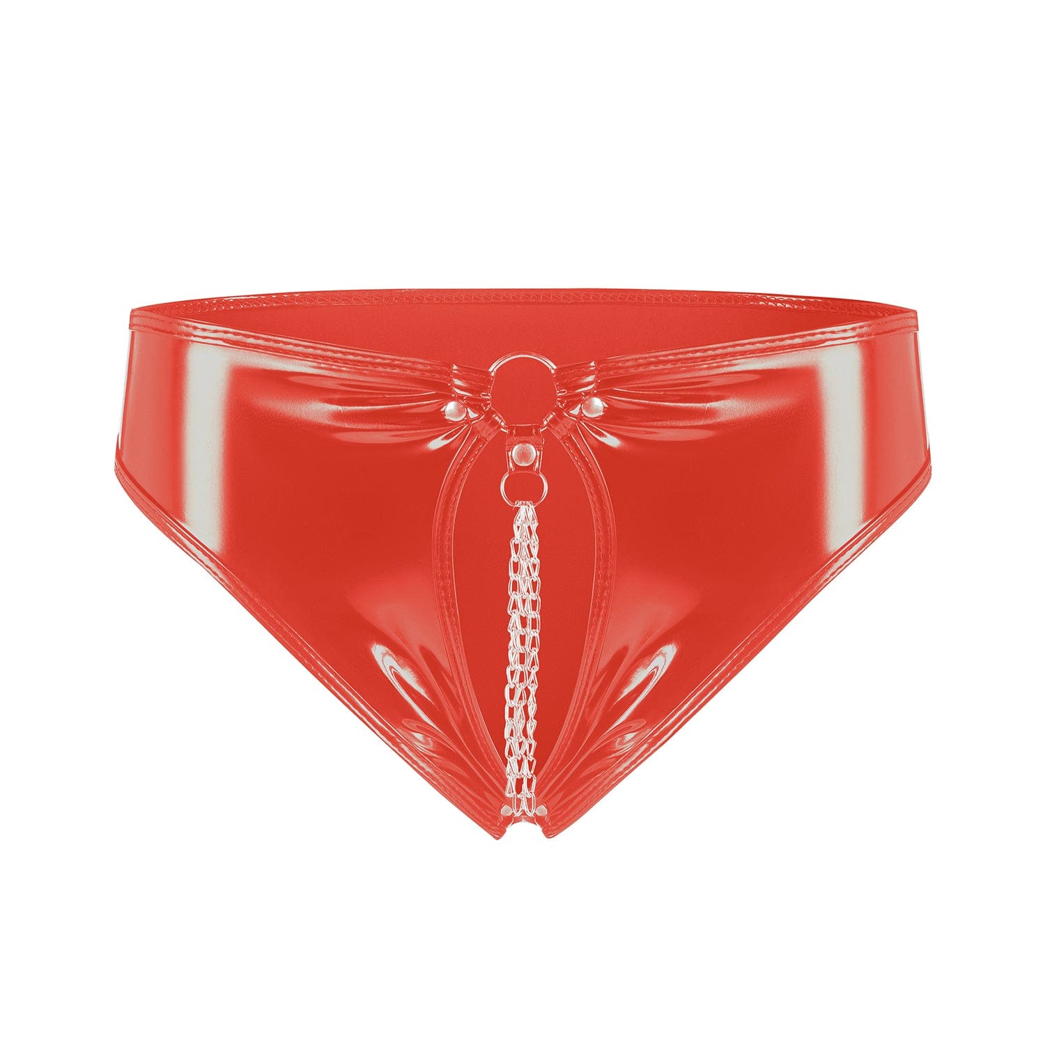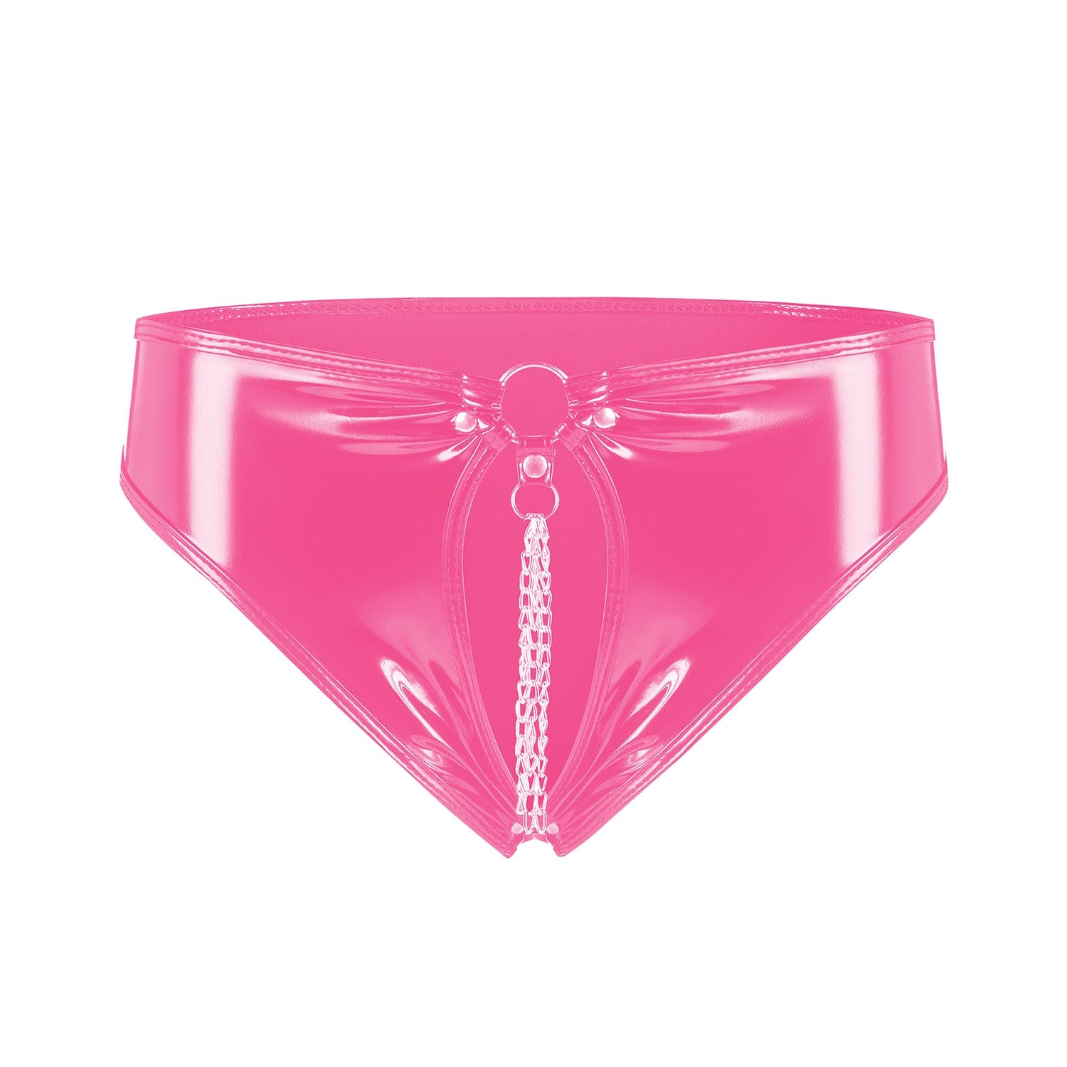 1. Women's sexy glossy leather shorts with chain, sexy opening crotch for sex, very erotic to wear.