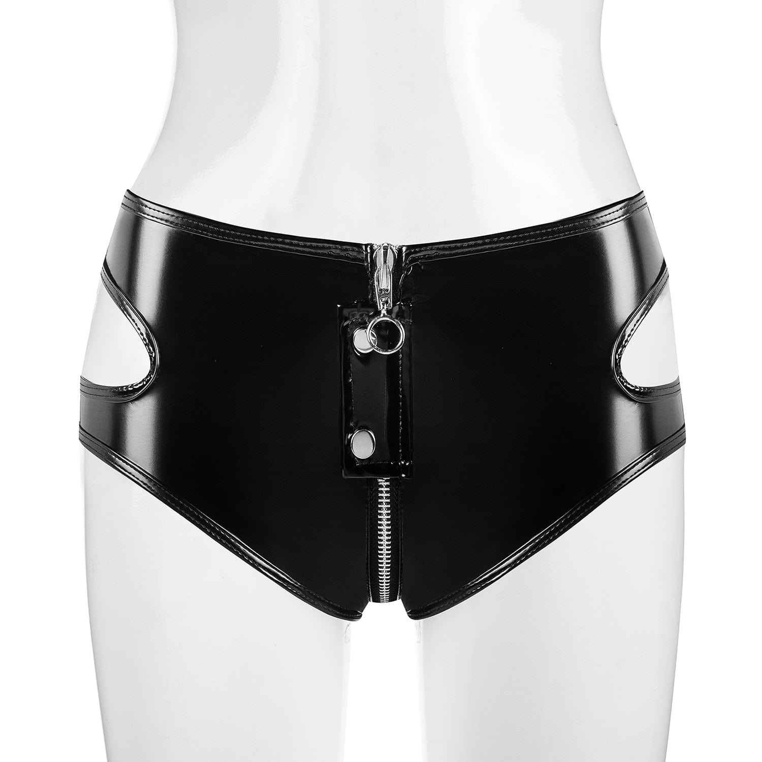 Women Sexy Open Crotch Leather Panties For Sex Low Waist Shorts Xokesy-137