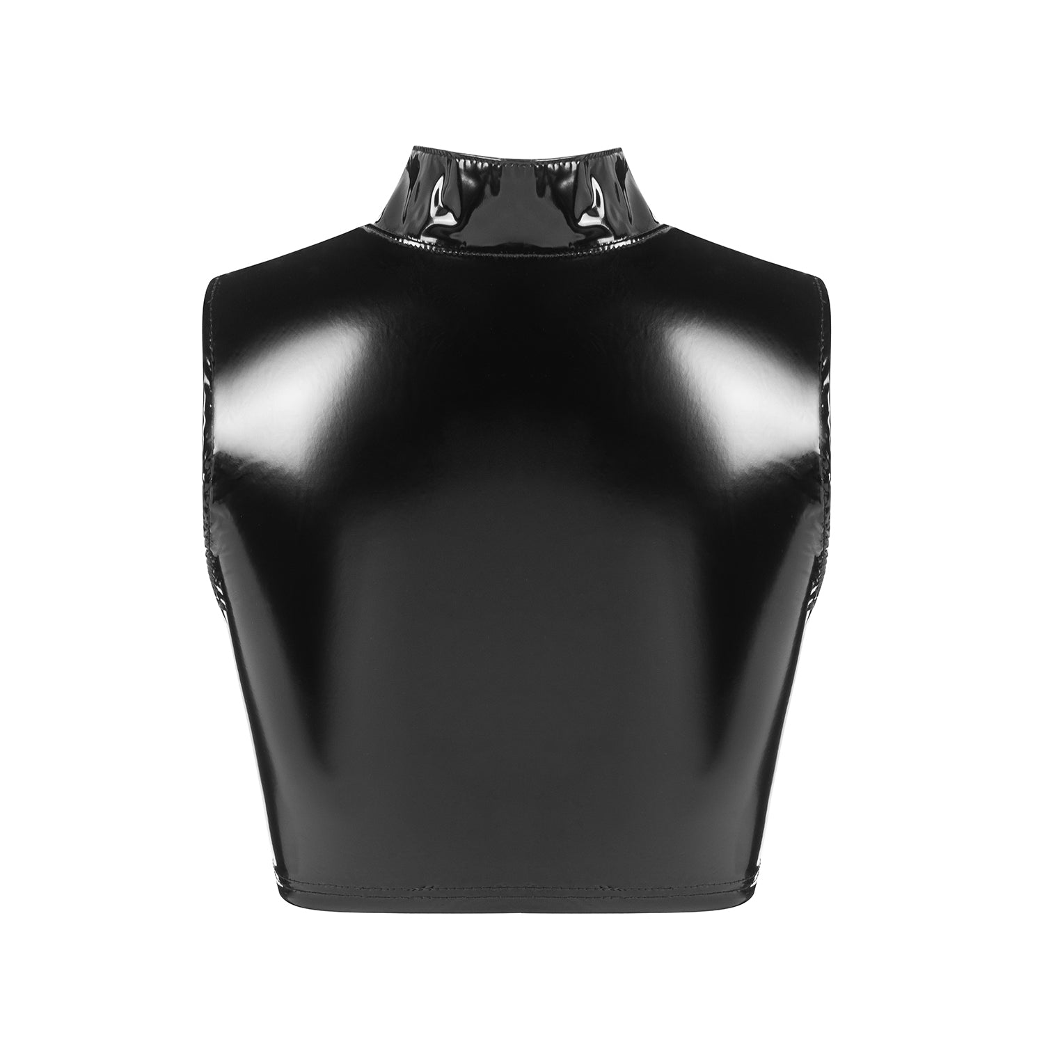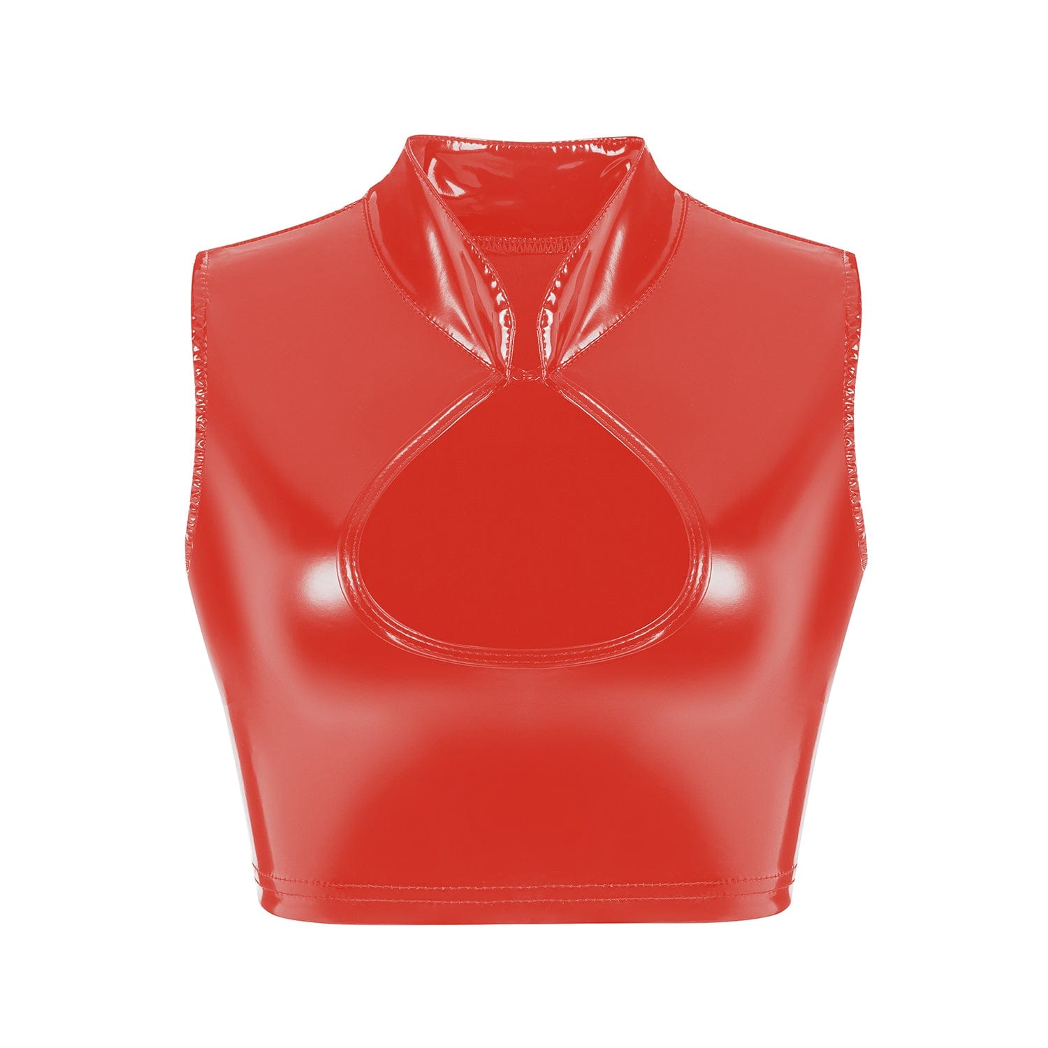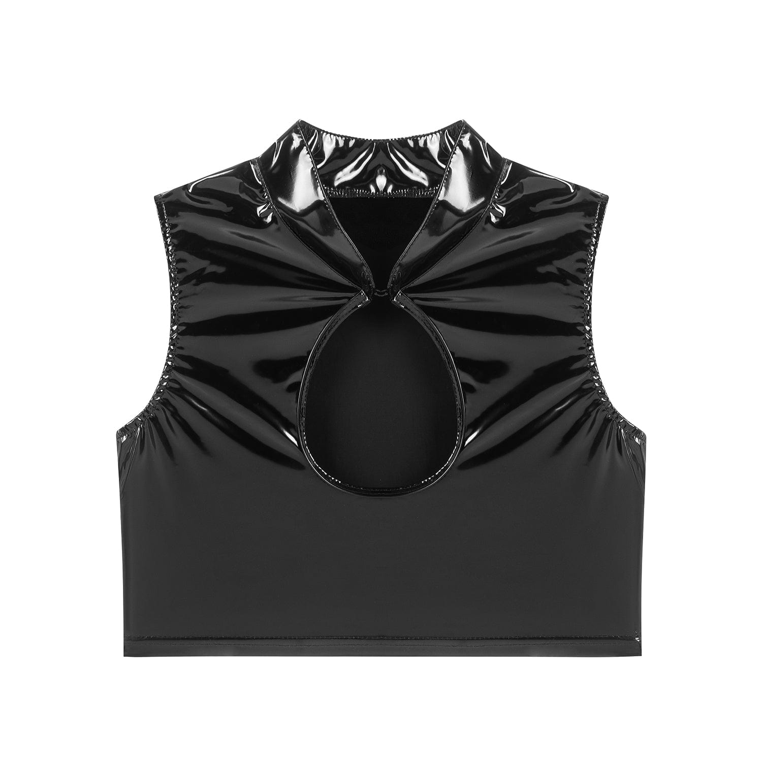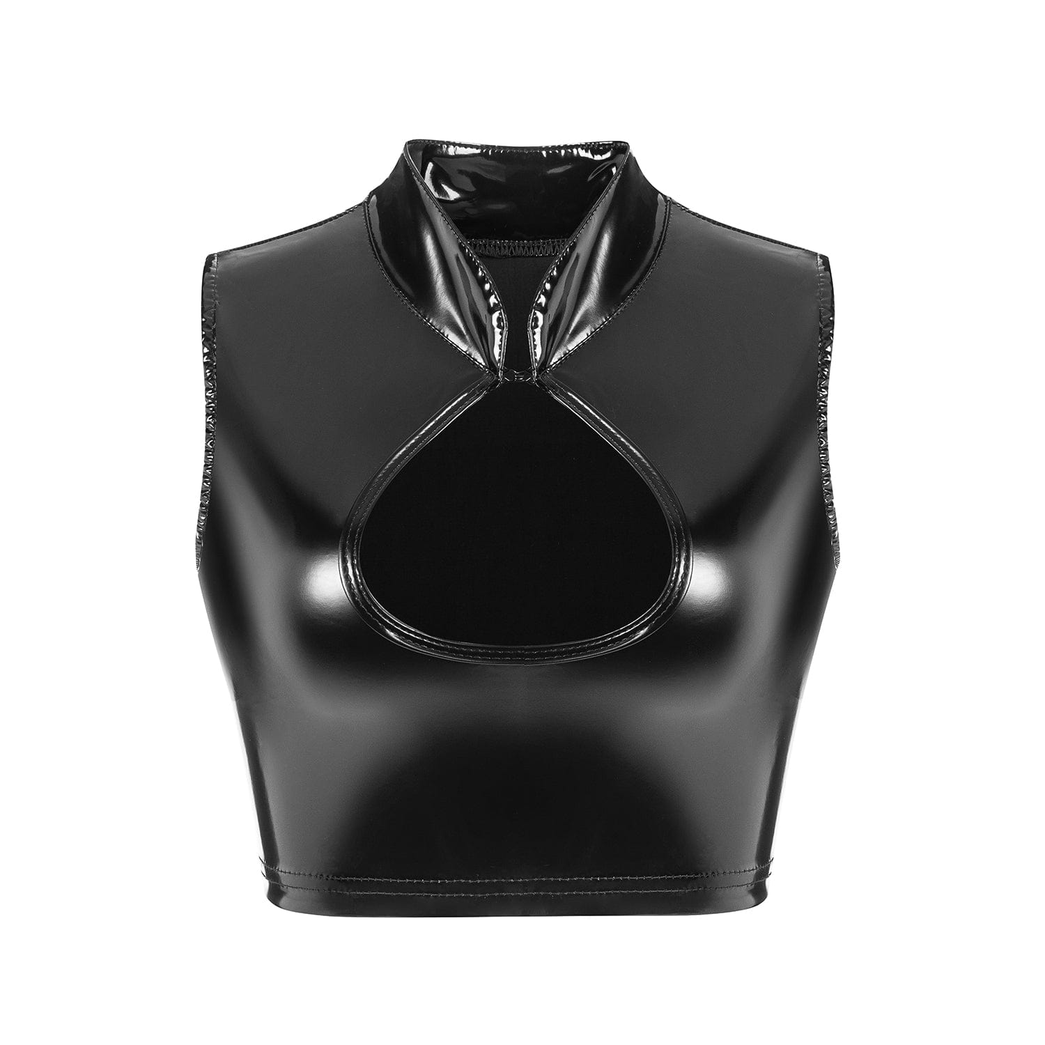 Women Sexy Wetlook Leather Camisole Erotic Crop Tank Tops Xokesy-167