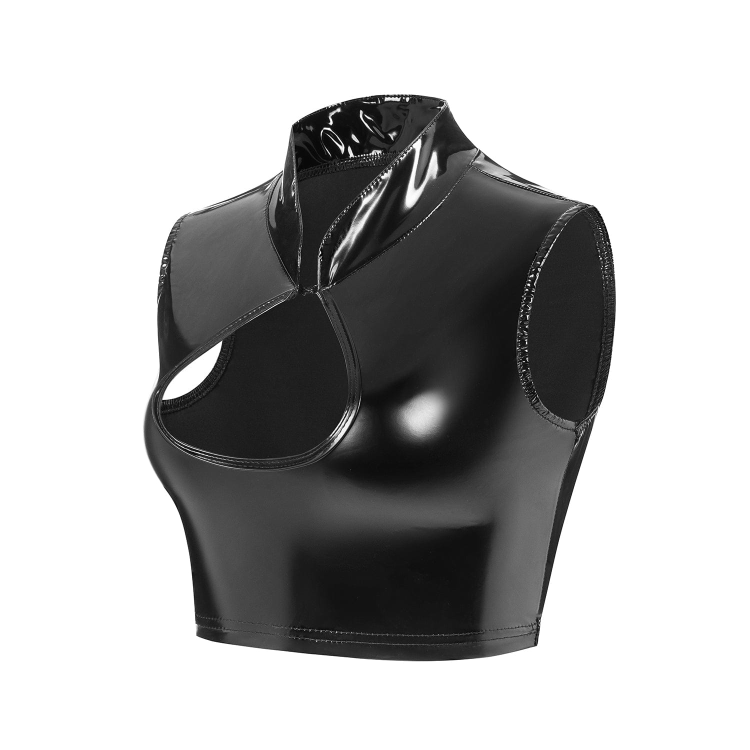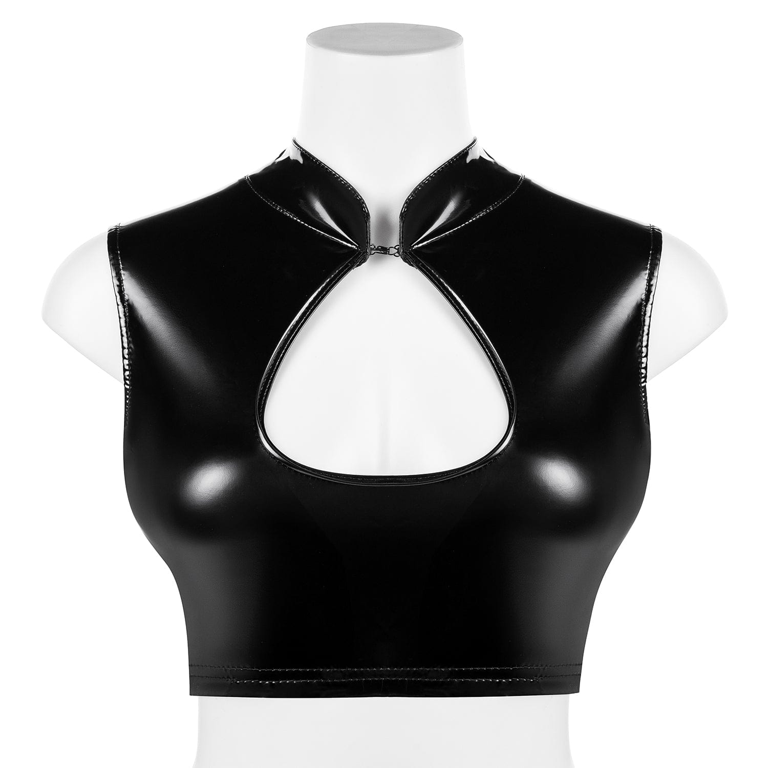 1. Women's sexy glossy leather tops, sexy shaping leather vest, very erotic to wear.
