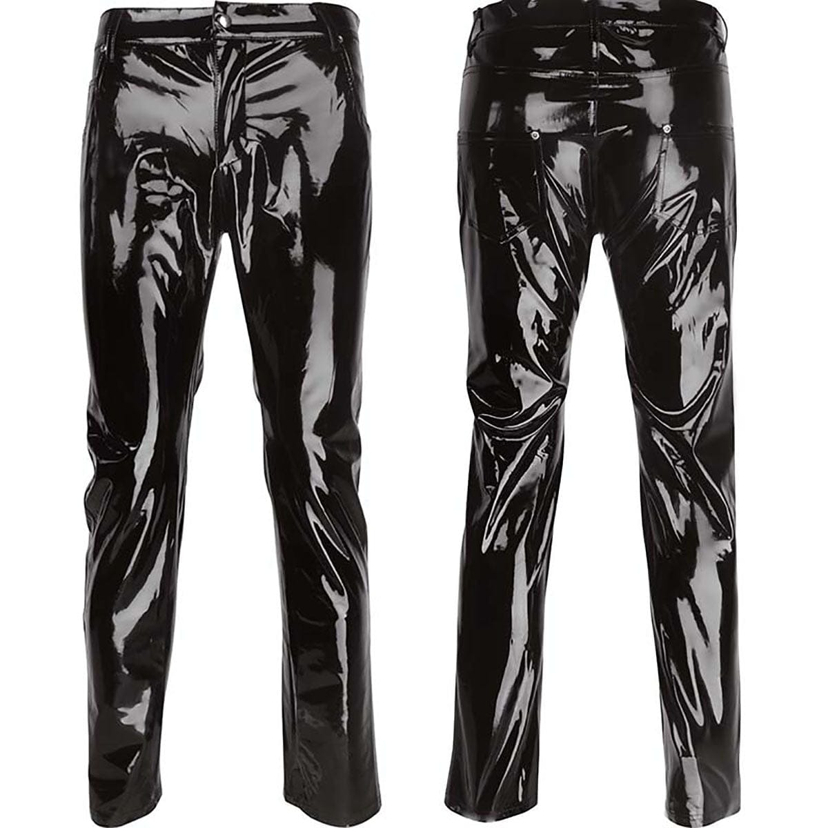 Men Glossy PVC Leather Long Pants Casual Mid Waist Straight Trousers Shiny Wetlook PU Leather Sexi