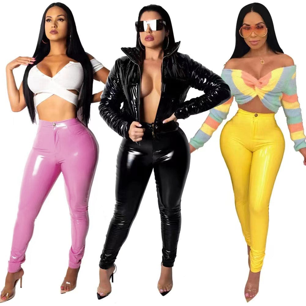 Glossy PVC Leather Sexy Long Pants For Women-056