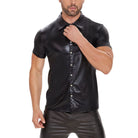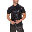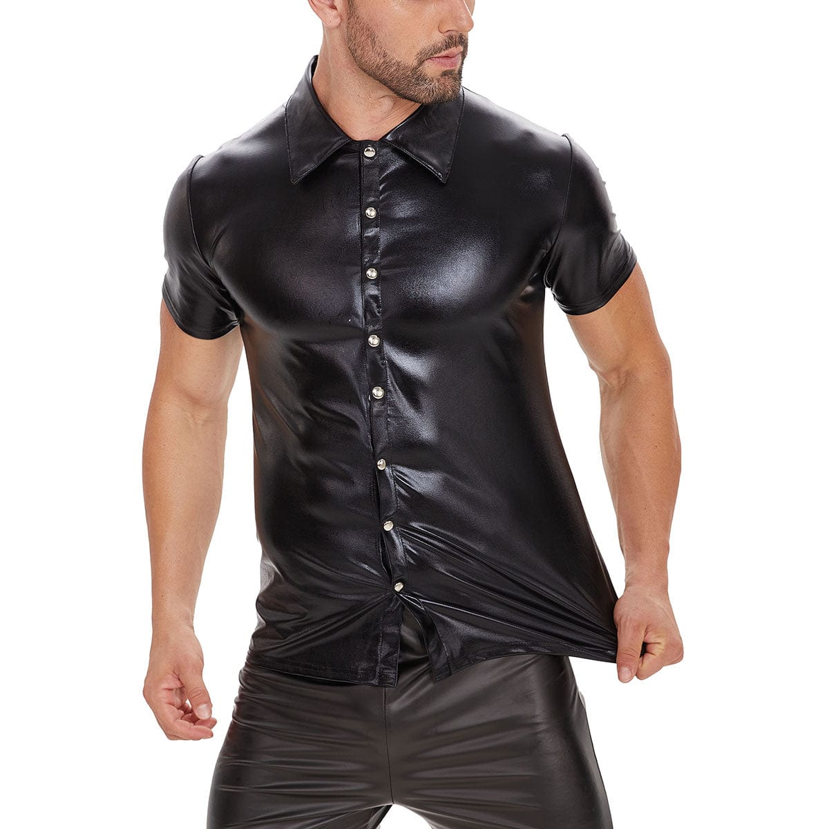 Men Shiny Soft Patent Leather Shirt Short Sleeve Metallic Jacket Xokesy-244Q