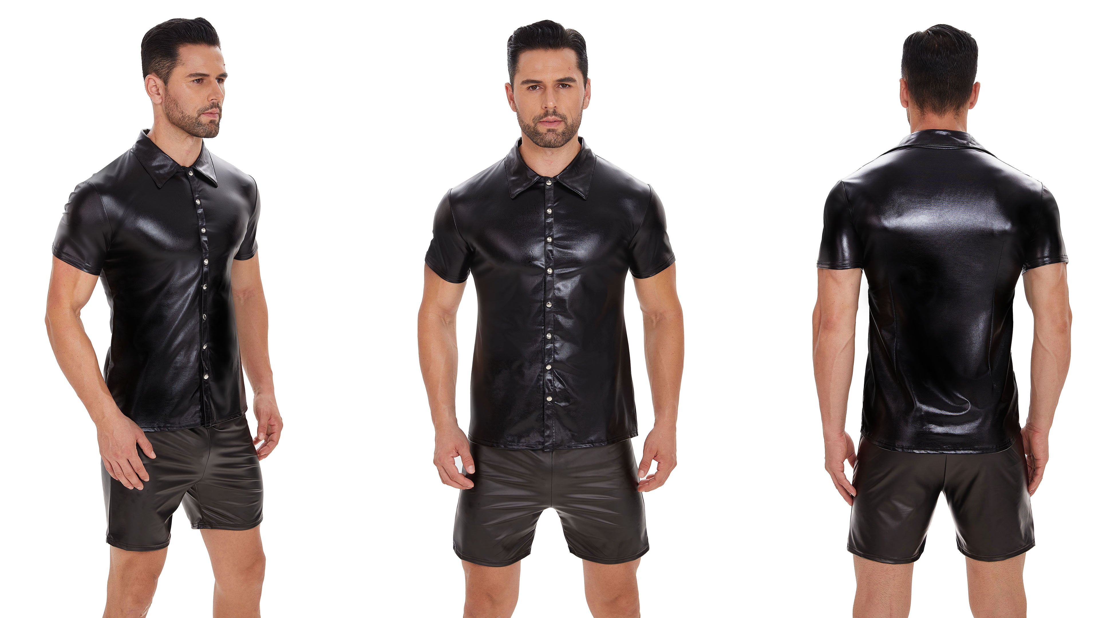 3. Soft leather short sleeve shirt is very sexy,highlight the charm of men,so it can add a lot of sexual love between couples.Best for sleepwear,night club,romantic gift,honeymoon,wedding night,lingerie party,etc.